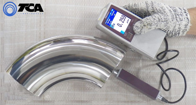 • Rugosimetro, para garantir que o acabamento superficial dos produtos fornecidos está conforme as especificações dos segmentos farmacêuticos e alimentícios; normalmente especificado rugosidade menor que 0,8 µmRa.
