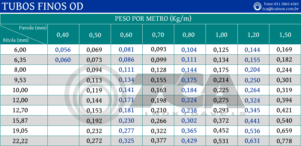 Tubos com as dimensões " O.D. " podem ser fornecidos com os seguintes acabamentos: - Decapado, - Escovado, ou - Polido.